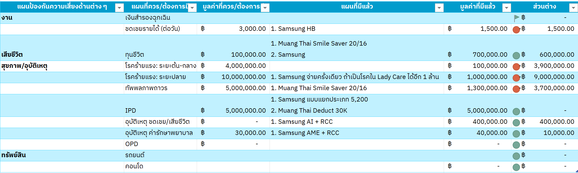 ตัวอย่าง การวางแผนความเสี่ยงและการประกัน