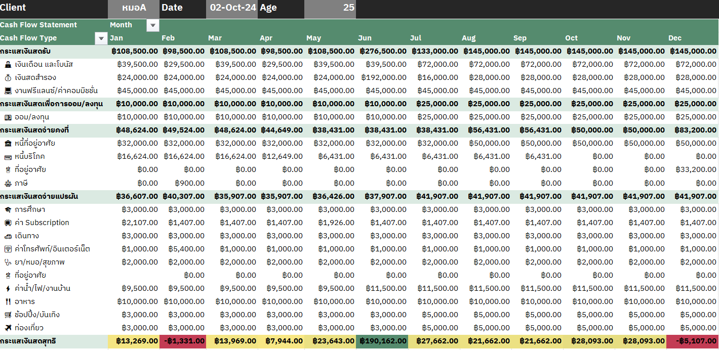 ตัวอย่าง การจัดทำงบกระแสเงินสดส่วนบุคคล