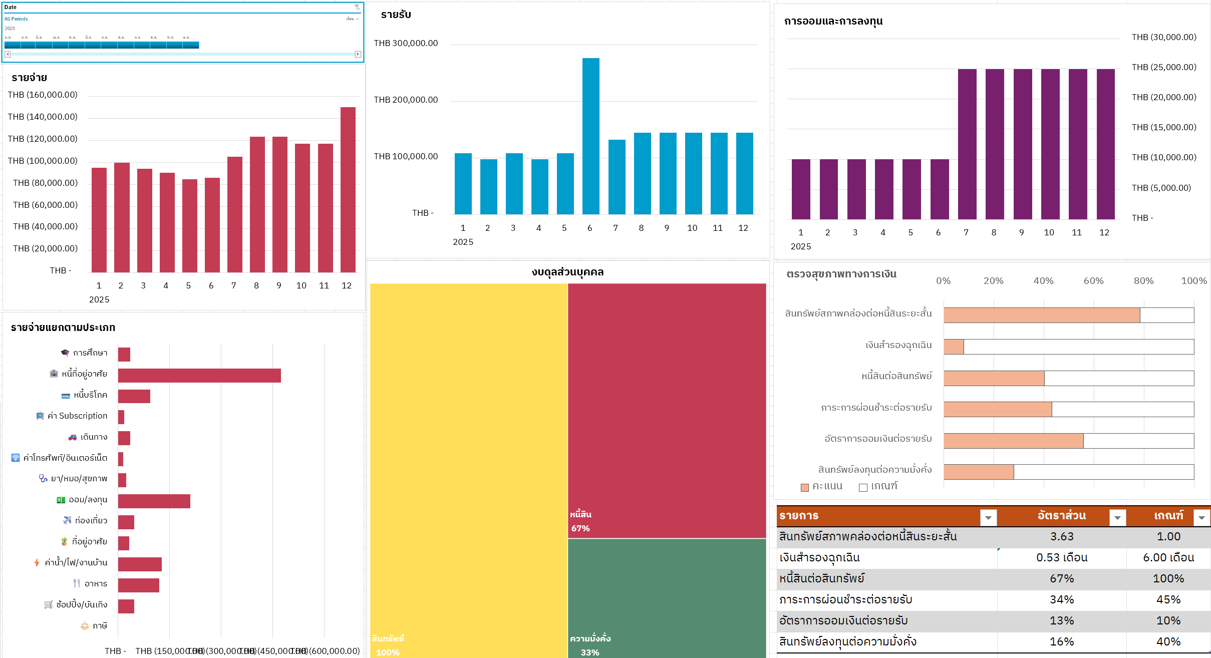 ตัวอย่าง การสรุปกระแสเงินสด และสัดส่วนรายได้